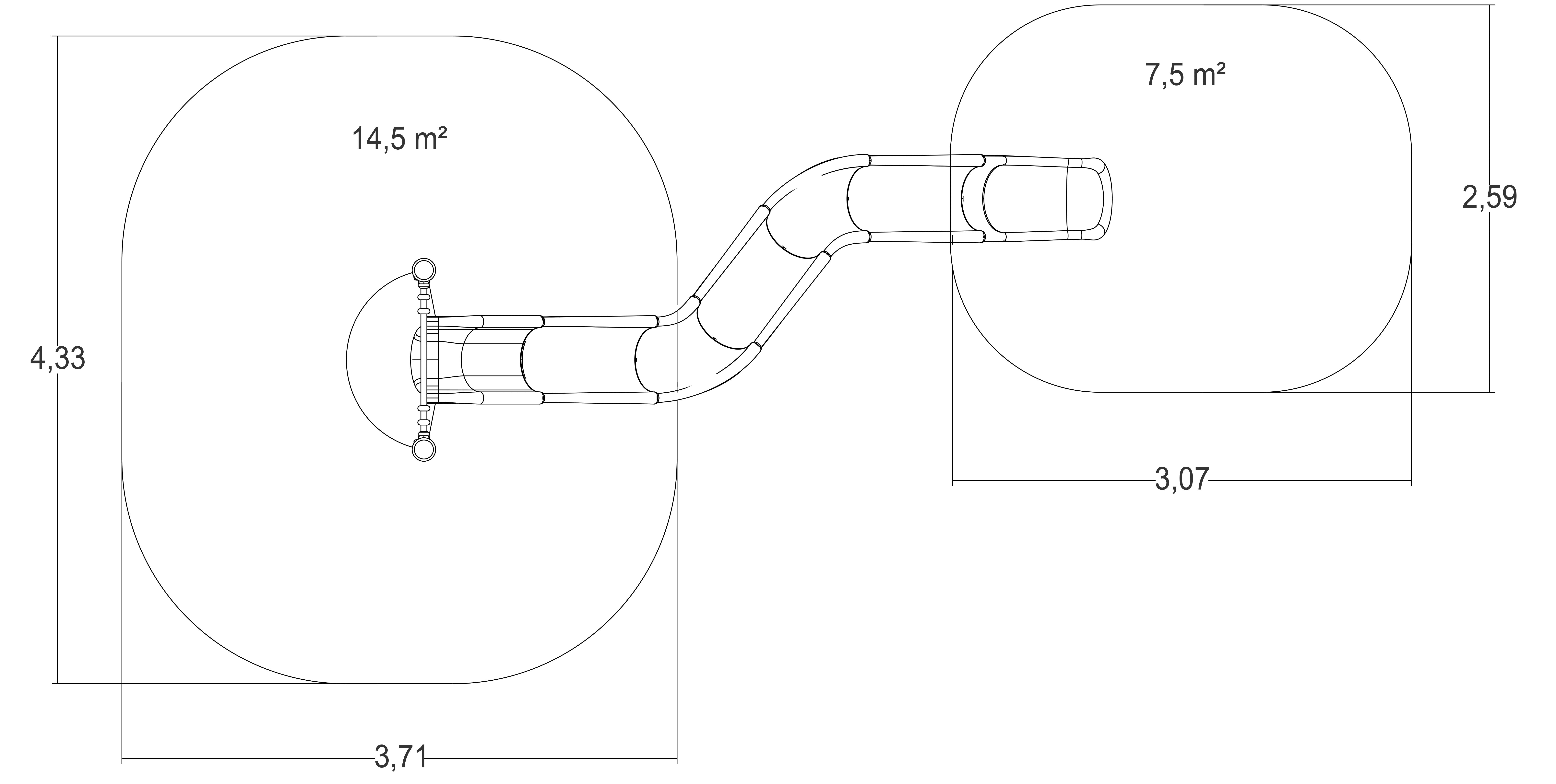 A modul méretei a következők: 5,12 m hosszú, 2,05 m széles, 4,30 m magas. A szabadesési magasság (HCL) 1,00 m.