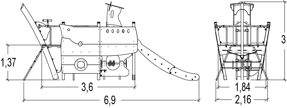 Barge - Hajós játszótéri felszerelés csúszdával és mászókával - J1951