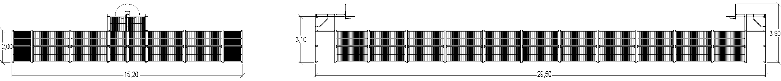 A modul méretei a következők: 29,50 m hosszú, 15,20 m széles, 3,90 m magas.