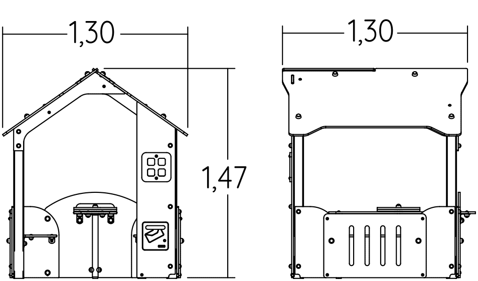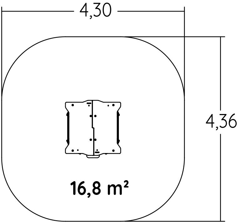 A modul méretei a következők: 1,36 m hosszú, 1,30 m széles, 1,48 m magas. A szabadesési magasság (HCL) 0,60 m.