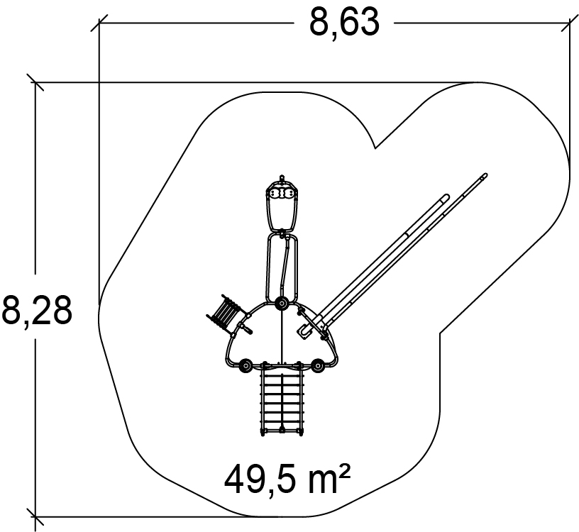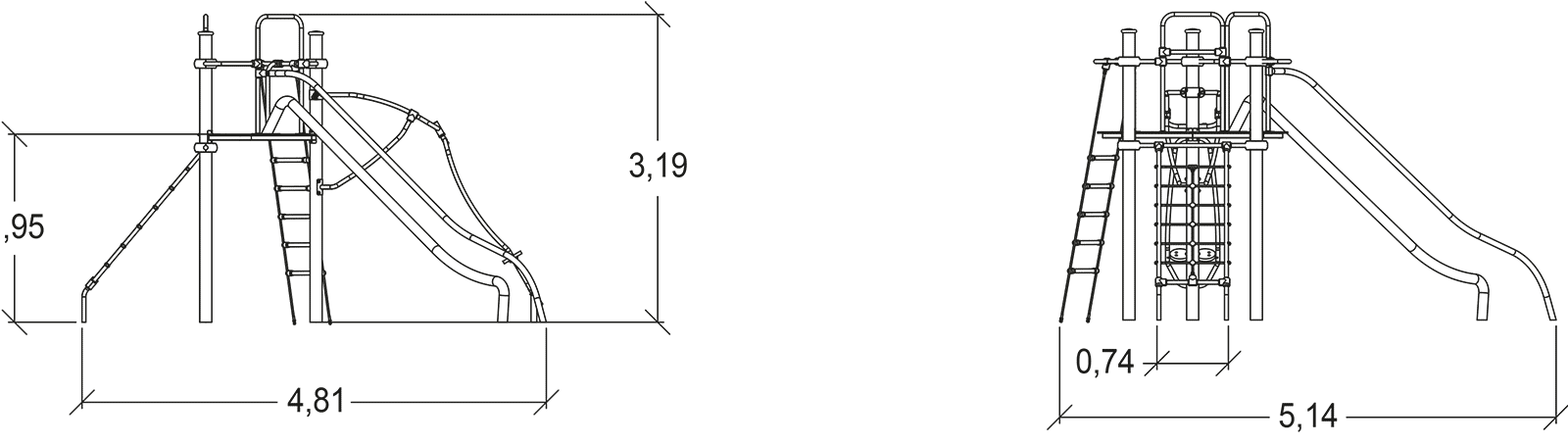 Többjátékos fémeszközök egyensúlyozó tevékenységekkel, turbócsúszdával és mászó tevékenységekkel - J2521-M