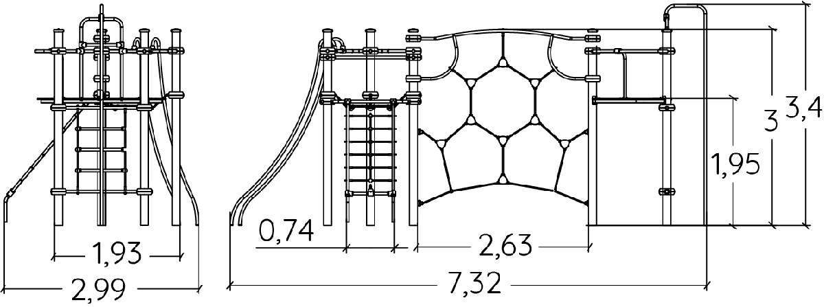 Többjátékos fémeszközök hálós szerkezettel, egyensúlyozási és mászási tevékenységekkel - J2533-M