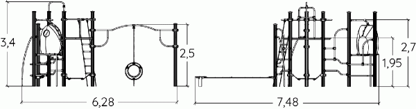 A modul méretei a következők: 7,47 m hosszú, 6,28 m széles, 3,40 m magas. A szabadesési magasság (HCL) 2,20 m.
