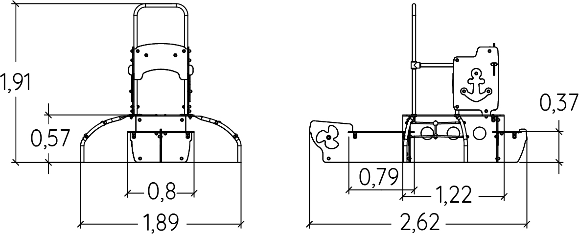A modul méretei a következők: 2,62 m hosszú, 1,89 m széles, 1,91 m magas. A szabadesési magasság (HCL) 0,58 m.