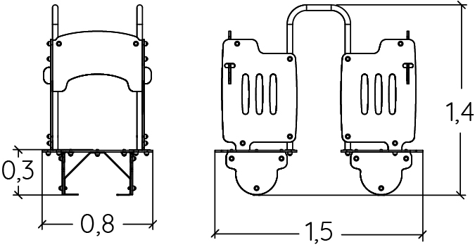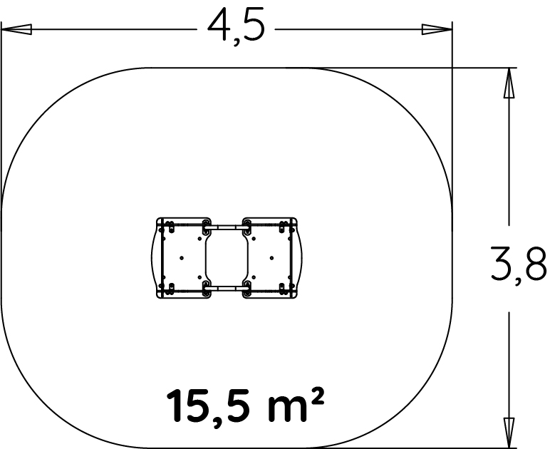 A modul méretei a következők: 1,50 m hosszú, 0,80 m széles, 1,40 m magas. A szabadesési magasság (HCL) 0,33 m.