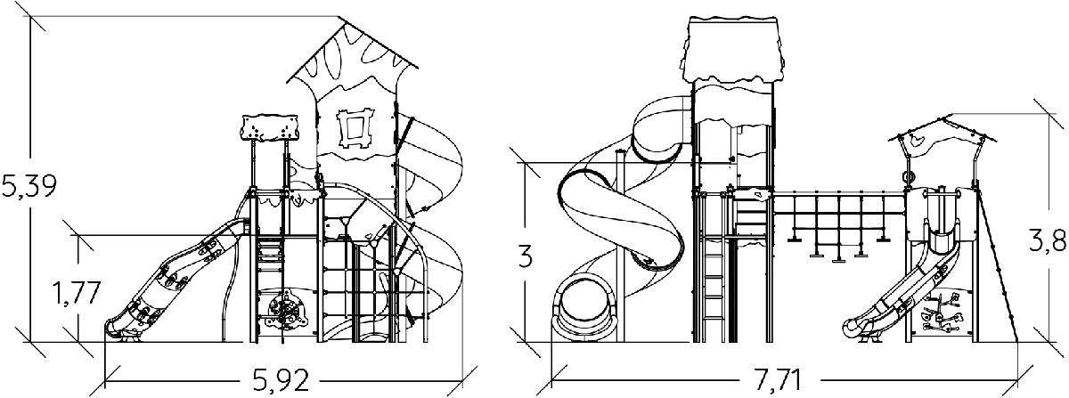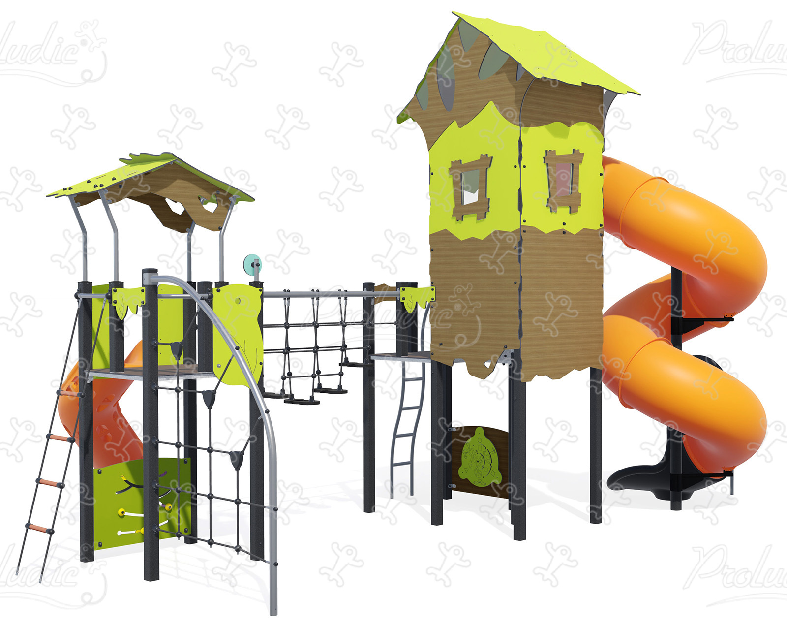 Természet Torony - Természet témájú játszótorony mászó tevékenységekkel, játszópanelekkel, kötélhíddal és csőcsúszdával - J2687