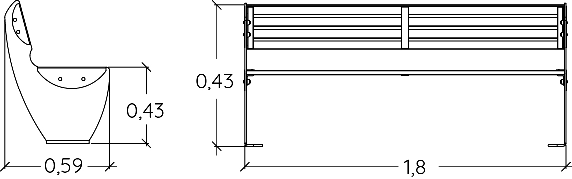 A modul méretei a következők: 1,80 m hosszú, 0,59 m széles, 0,43 m magas.