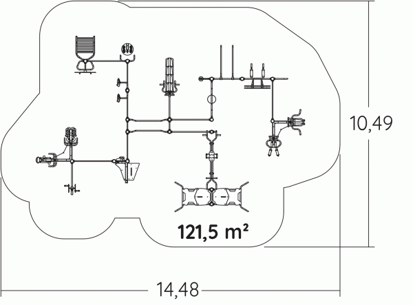 A modul méretei a következők: 11,48 m hosszú, 7,49 m széles, 3,45 m magas. A szabadesési magasság (HCL) 1,27 m.