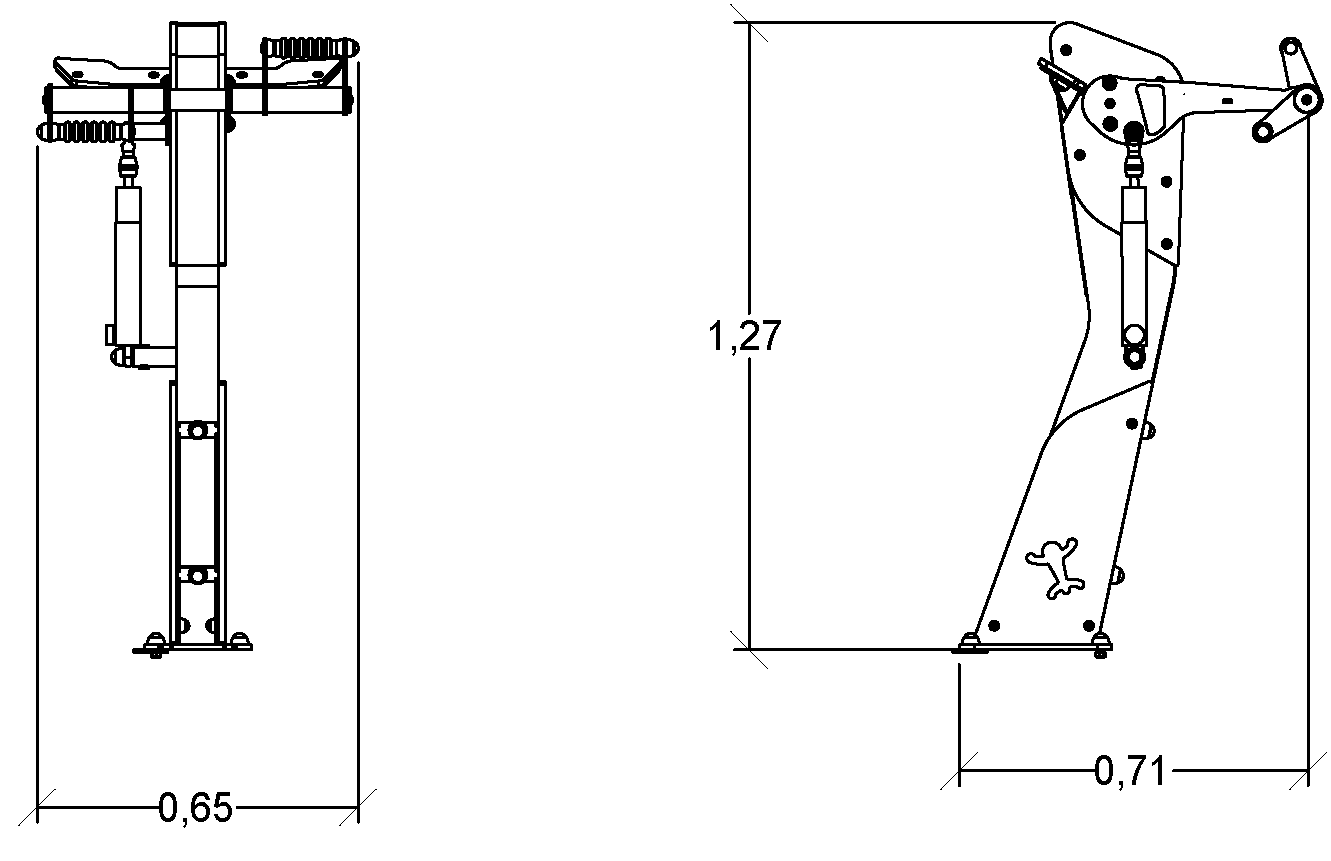A modul méretei a következők: 0,70 m hosszú, 0,65 m széles, 1,27 m magas. A szabadesési magasság (HCL) 1,30 m.