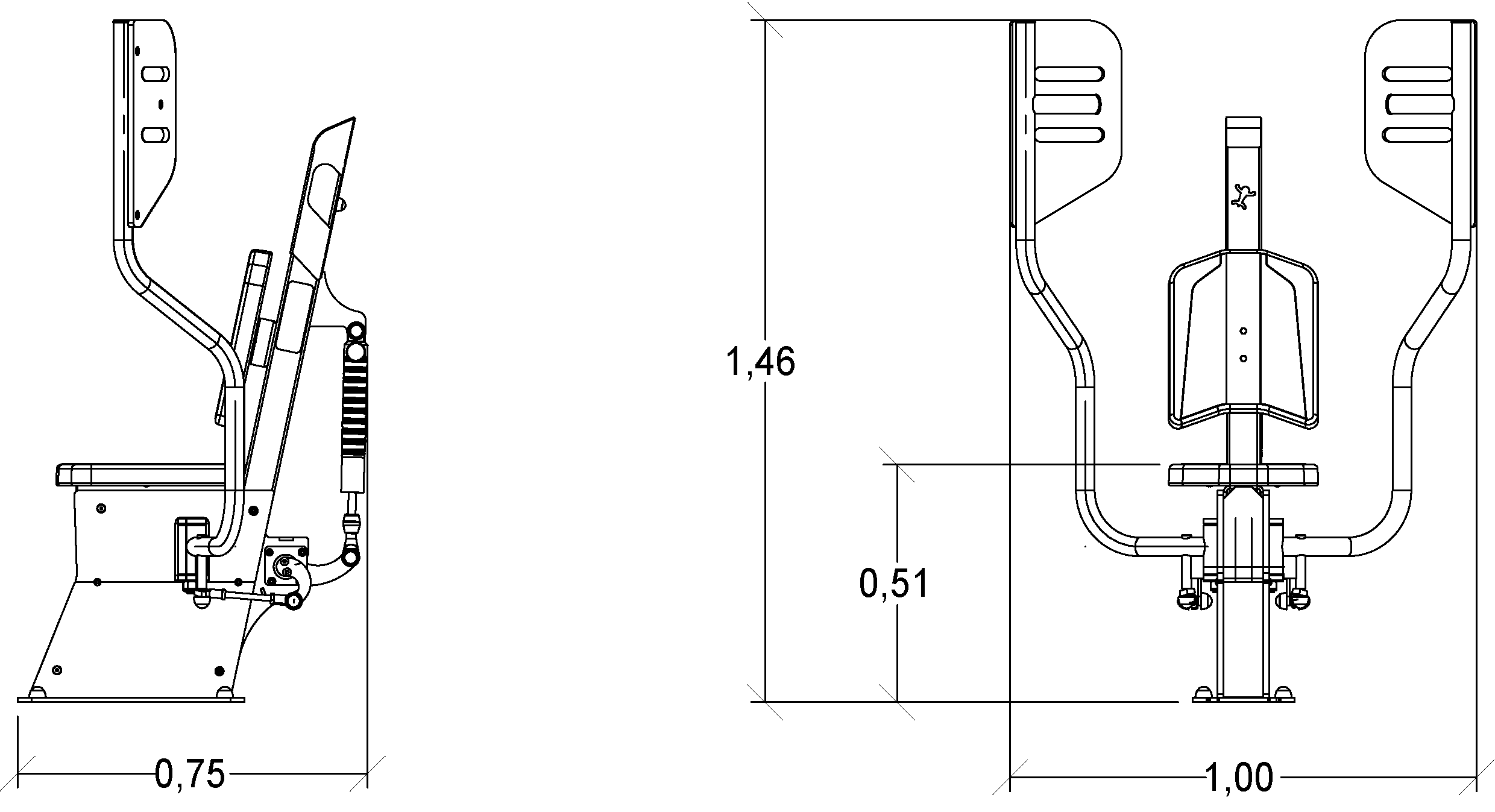 A modul méretei a következők: 0,75 m hosszú, 1,00 m széles, 1,46 m magas. A szabadesési magasság (HCL) 0,60 m.