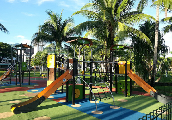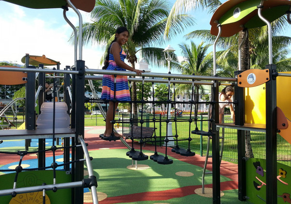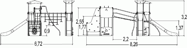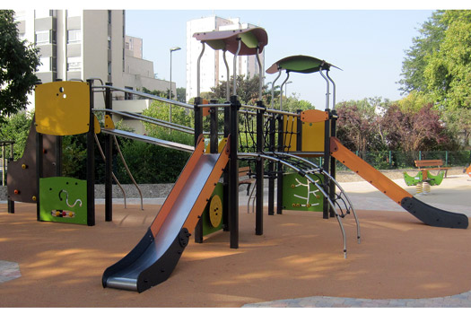 Többjátékos eszközök gyerekeknek csúszdákkal, kötélhíddal és mászó tevékenységekkel - J38109