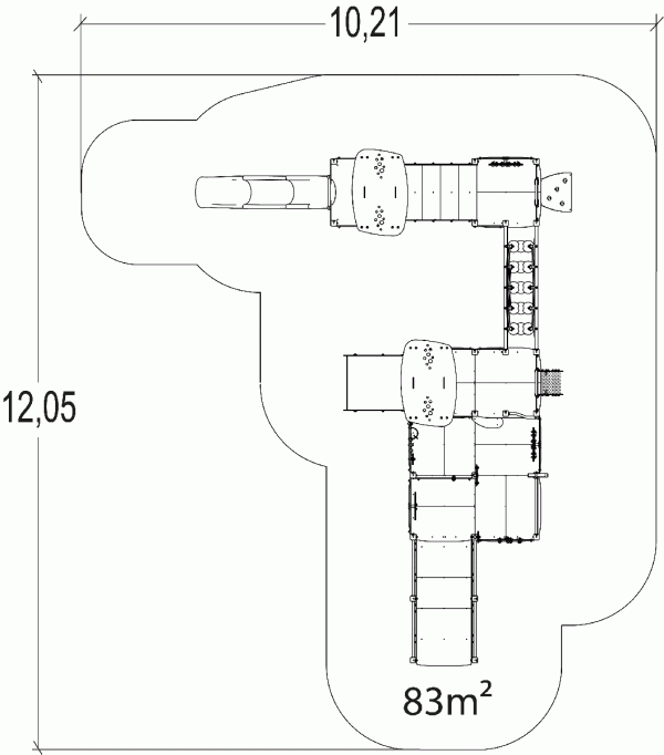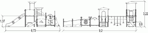 A modul méretei a következők: 9,20 m hosszú, 6,72 m széles, 3,22 m magas. A szabadesési magasság (HCL) 1,37 m.