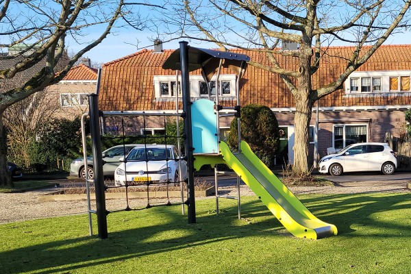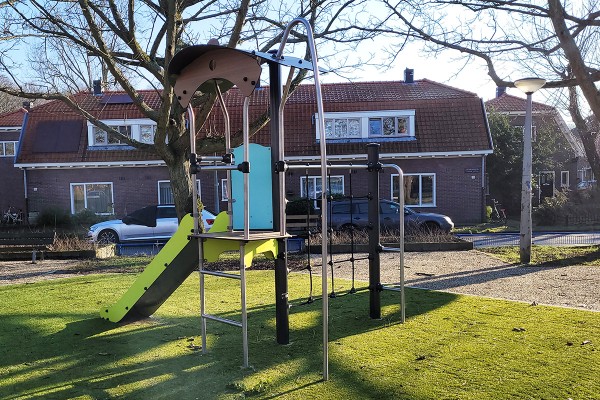 Többjátékos eszközök mászó tevékenységekkel, tűzoltórúddal és csúszdával pasztell és fa színekben - J3829-C