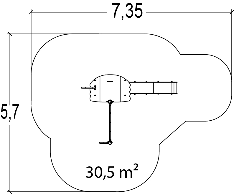 A modul méretei a következők: 3,51 m hosszú, 2,57 m széles, 3,00 m magas. A szabadesési magasság (HCL) 2,00 m.
