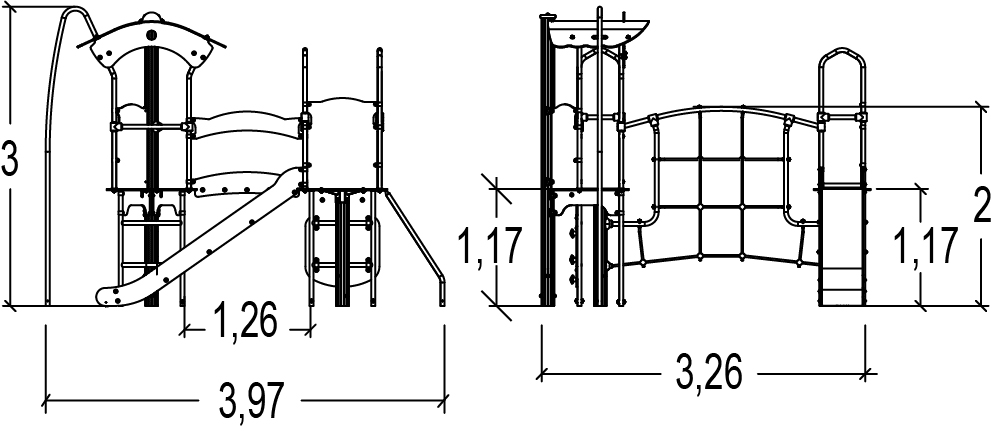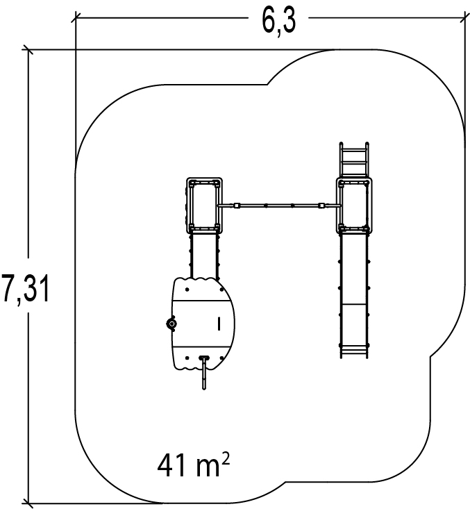 A modul méretei a következők: 3,97 m hosszú, 3,30 m széles, 3,00 m magas. A szabadesési magasság (HCL) 2,00 m.