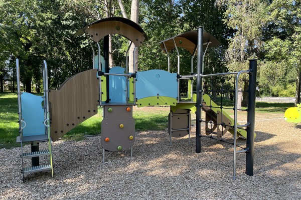 Többjátékos eszközök csúszdával, játszóházakkal és mászókákkal pasztell- és fa színekben - J3845-C