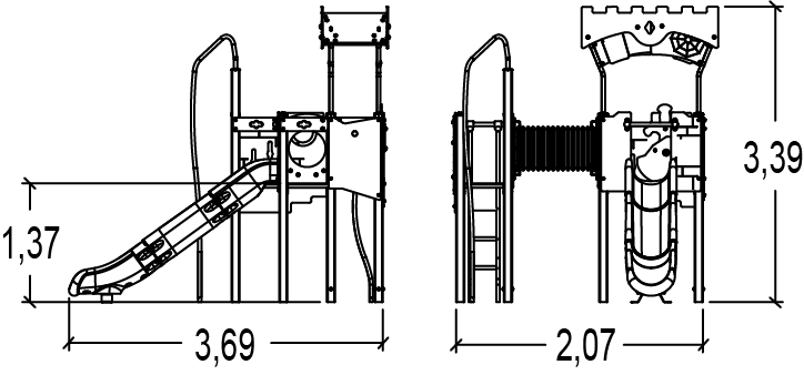 Rampart - Többjátékos eszköz emelt játszóházzal, alagúttal és csúszdával - J38450