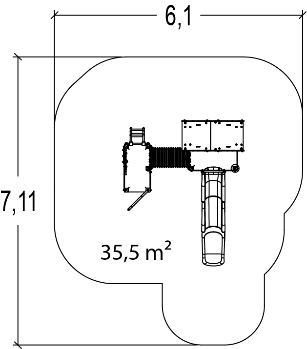 A modul méretei a következők: 3,07 m hosszú, 3,69 m széles, 3,39 m magas. A szabadesési magasság (HCL) 2,10 m.