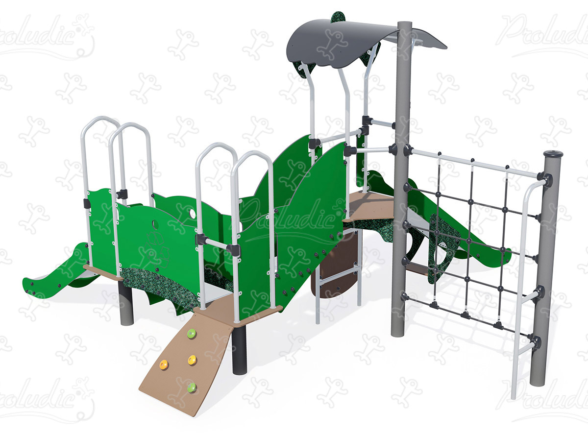 Zöld többjátékos játék csúszdával, emelt játszóházzal és mászókákkal - J3851-HDPE®