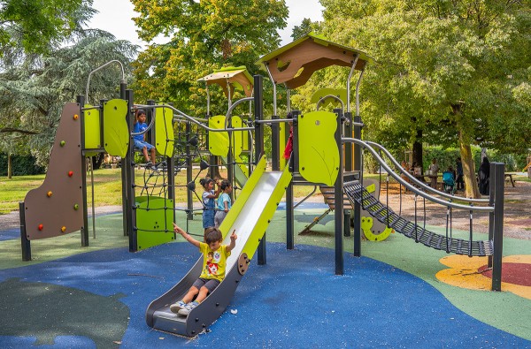 Többjátékos eszközök csúszdákkal, emelt játszóházakkal, valamint egyensúlyozó és mászó tevékenységekkel - J38553®