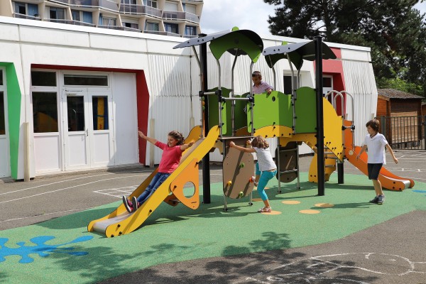 Többjátékos eszközök csúszdákkal, mászókákkal és emelt játszóházakkal - J3857