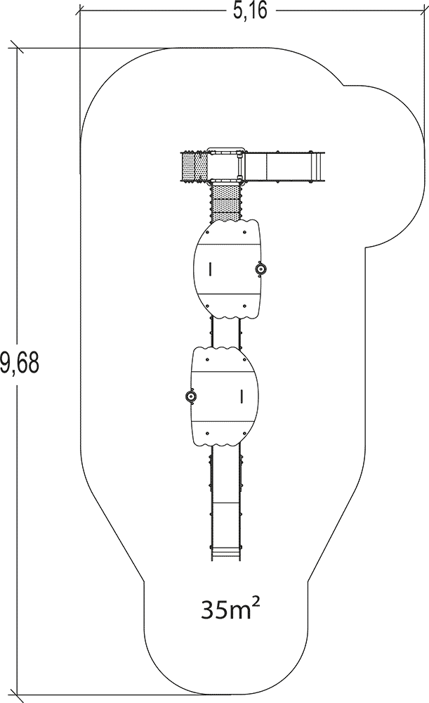 A modul méretei a következők: 6,18 m hosszú, 2,16 m széles, 2,94 m magas. A szabadesési magasság (HCL) 1,17 m.