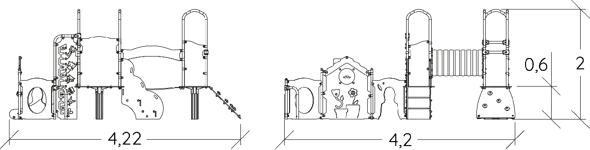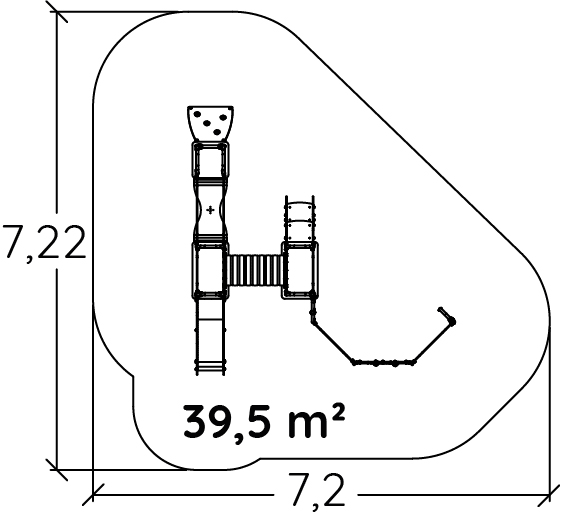 A modul méretei a következők: 4,22 m hosszú, 4,21 m széles, 2,00 m magas. A szabadesési magasság (HCL) 1,00 m.