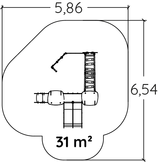 A modul méretei a következők: 3,55 m hosszú, 2,93 m széles, 2,12 m magas. A szabadesési magasság (HCL) 1,00 m.