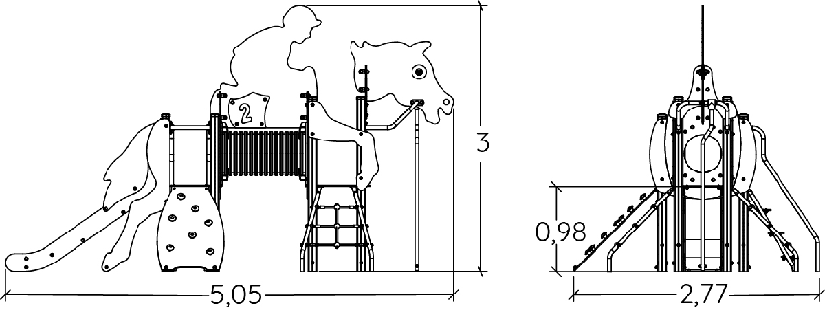 Zsoké - Ló- és zsoké játszótéri felszerelés csúszdával, mászókával és alagúttal - J4039