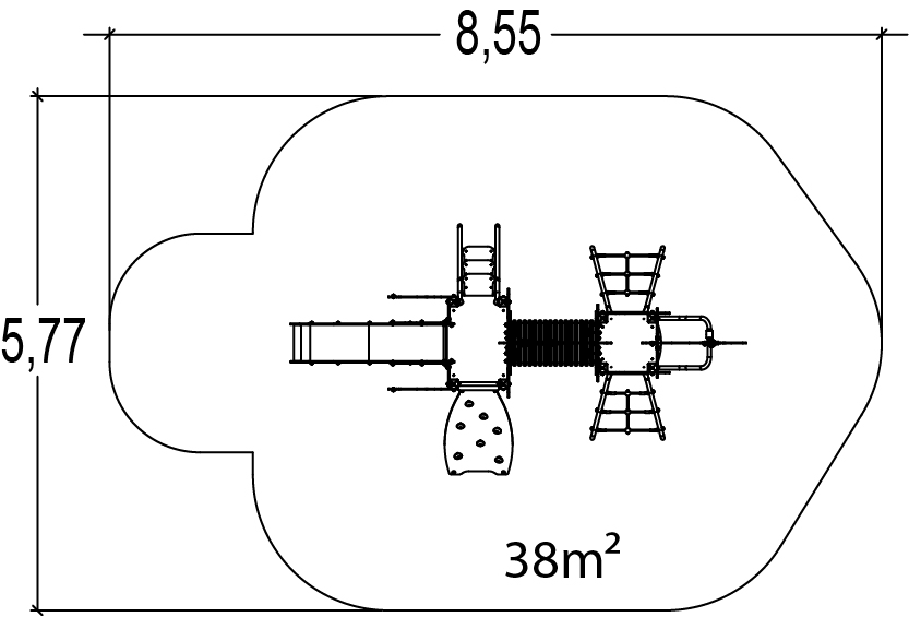 A modul méretei a következők: 5,05 m hosszú, 2,77 m széles, 3,00 m magas. A szabadesési magasság (HCL) 1,00 m.