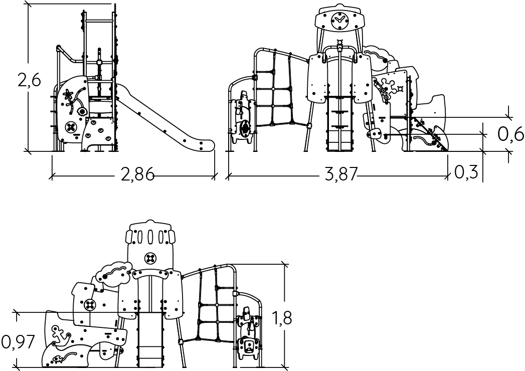 Nagy Óra - Többjátékos eszköz csúszdával, mászókával és játékpanellel - J4060