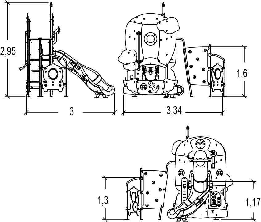 Hőlégballon - Többjátékos eszköz csúszdával, játszópanellel és mászó tevékenységekkel - J4072