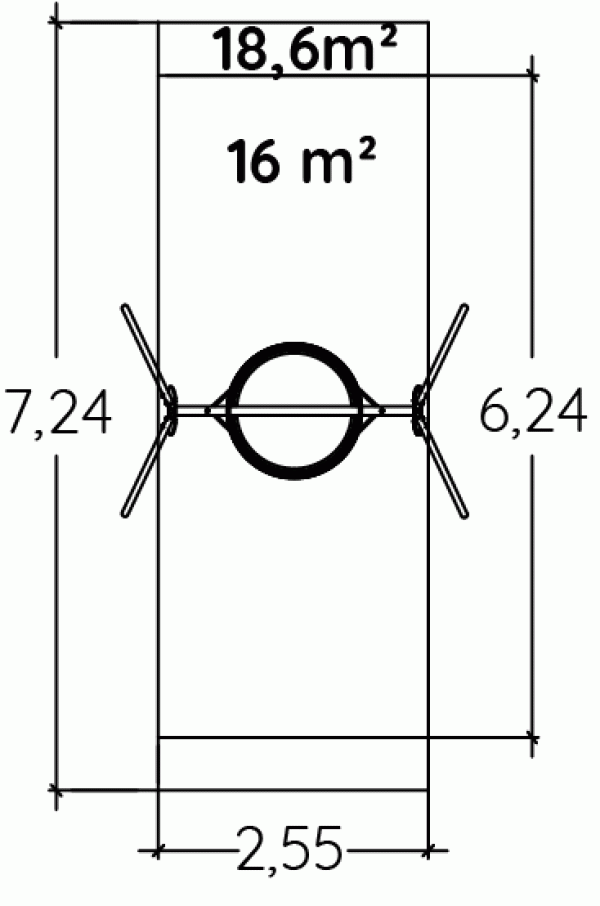 A modul méretei a következők: 3,37 m hosszú, 2,10 m széles, 2,63 m magas. A szabadesési magasság (HCL) 1,55 m.