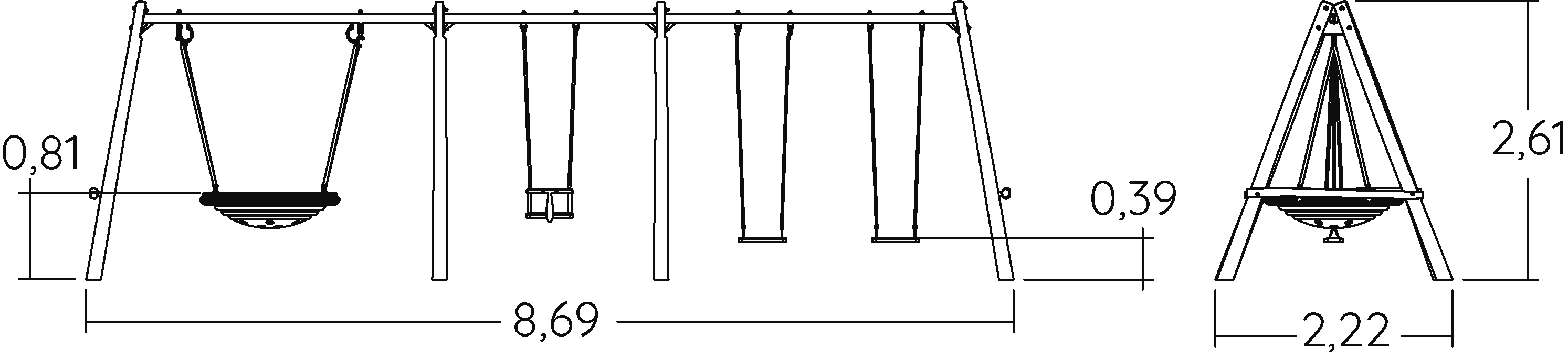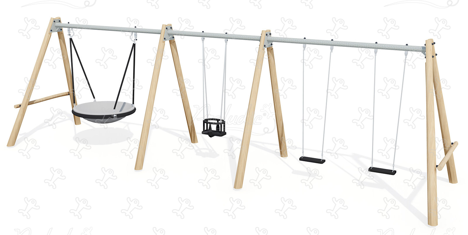 Hagyományos eszközök - Hinta 2 vízszintes üléssel, 1 babaüléssel - J447-G