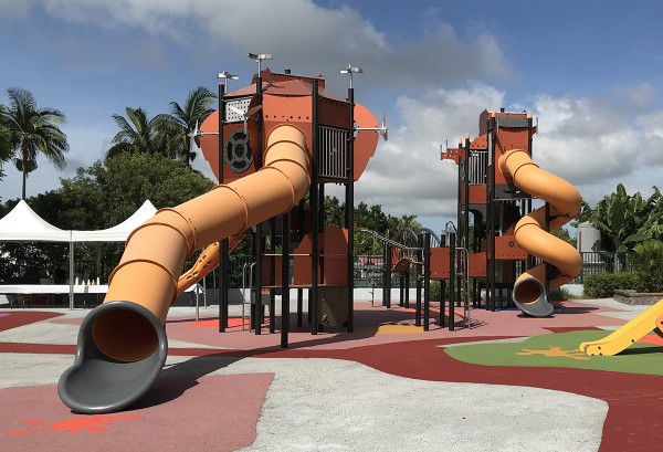 Óriási dupla játszótorony polietilén csúszdákkal, kötélhíddal és mászó tevékenységekkel - J47102-P