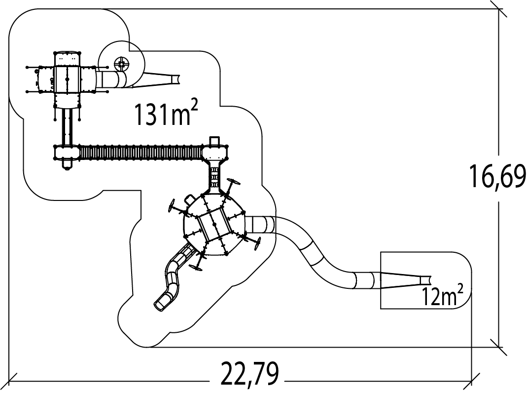 A modul méretei a következők: 20,00 m hosszú, 13,00 m széles, 7,00 m magas. A szabadesési magasság (HCL) 2,37 m.
