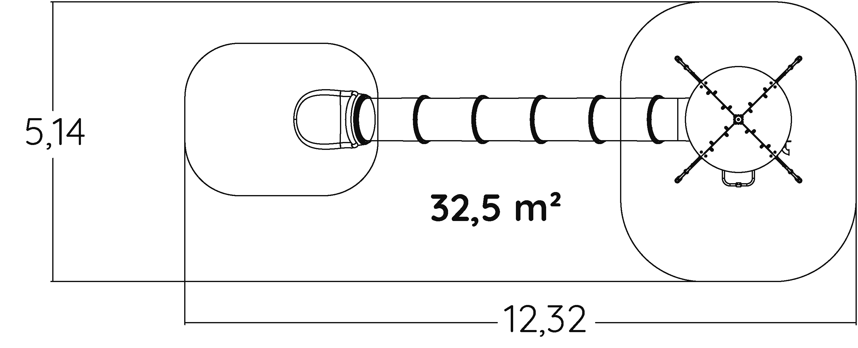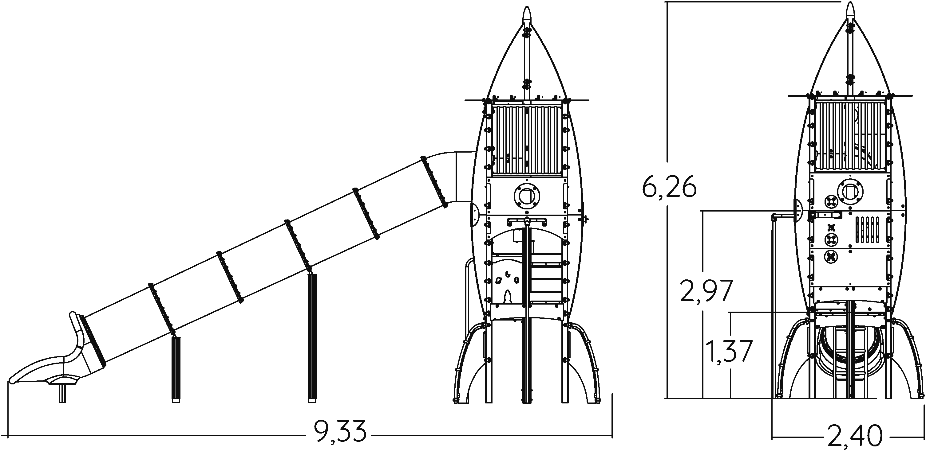 A modul méretei a következők: 9,33 m hosszú, 2,40 m széles, 6,26 m magas. A szabadesési magasság (HCL) 1,89 m.