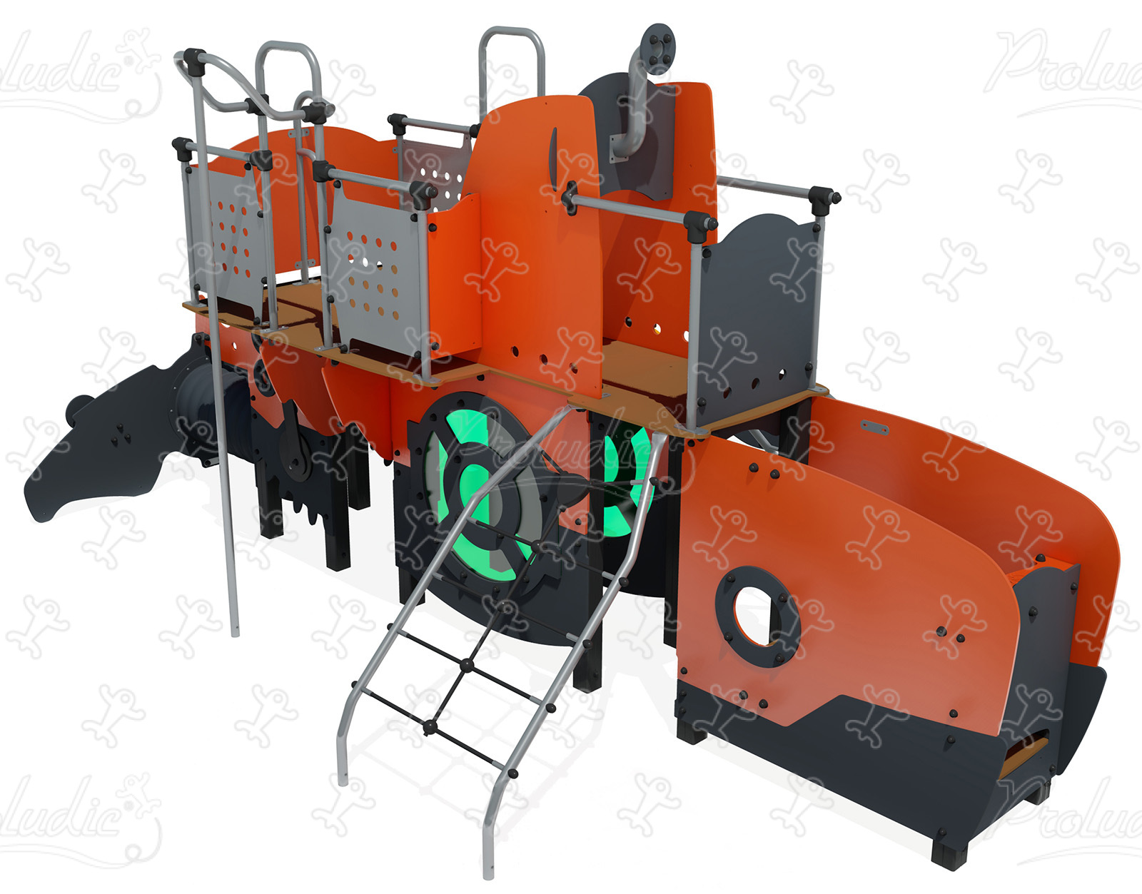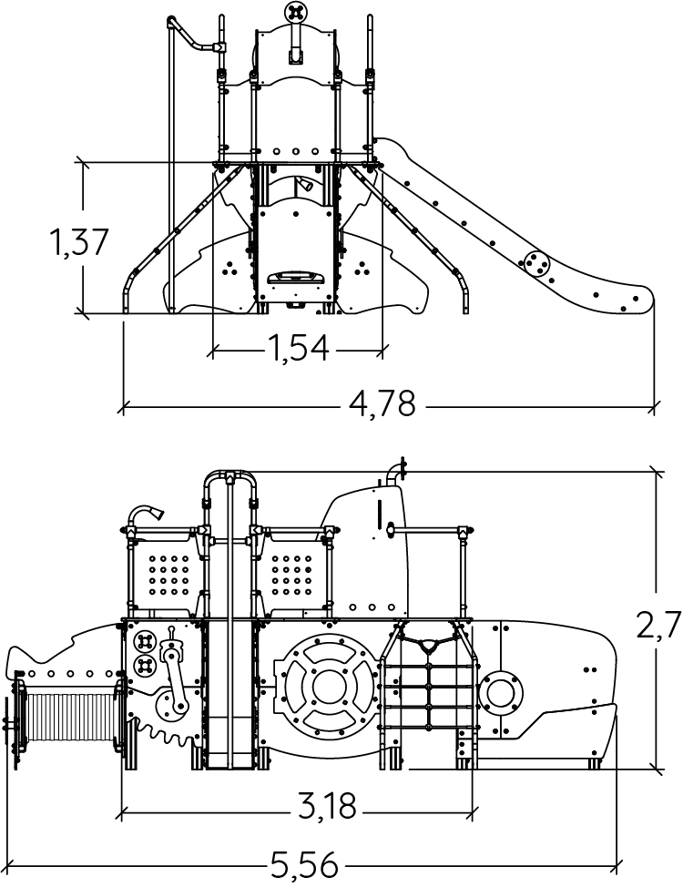 Nautilus - Tengeralattjárós többjátékos eszköz csúszdákkal és mászó tevékenységekkel - J47450