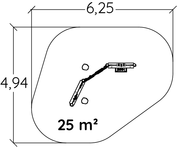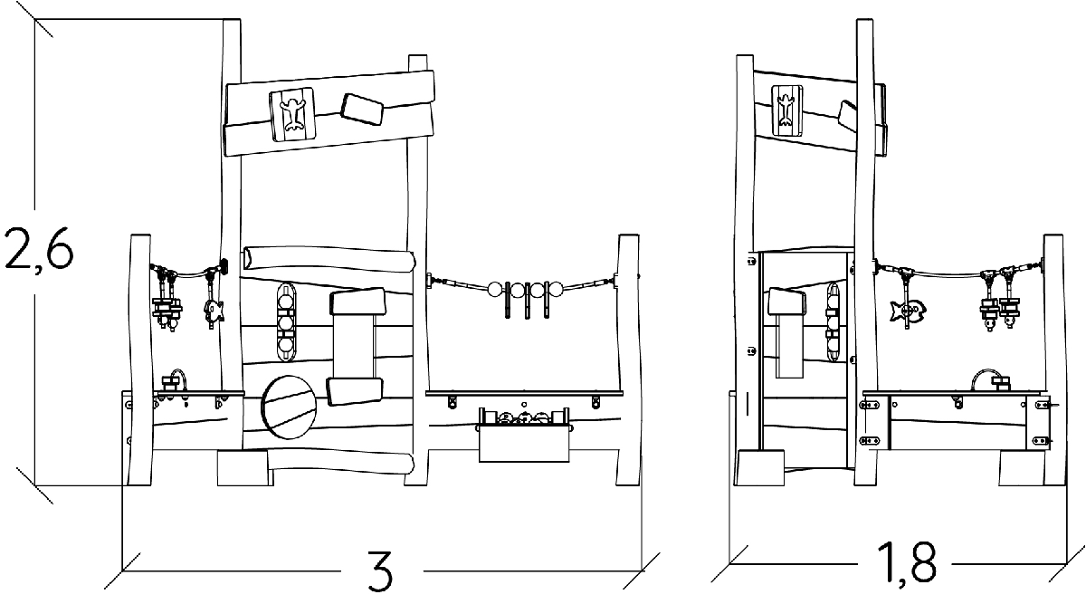 A modul méretei a következők: 3,00 m hosszú, 1,80 m széles, 2,60 m magas. A szabadesési magasság (HCL) 0,60 m.