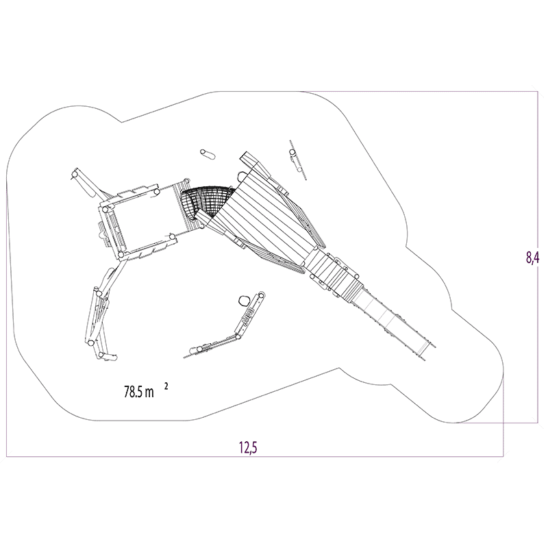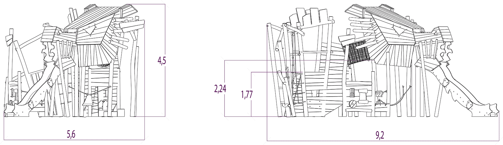 A modul méretei a következők: 9,20 m hosszú, 5,60 m széles, 4,50 m magas. A szabadesési magasság (HCL) 2,24 m.