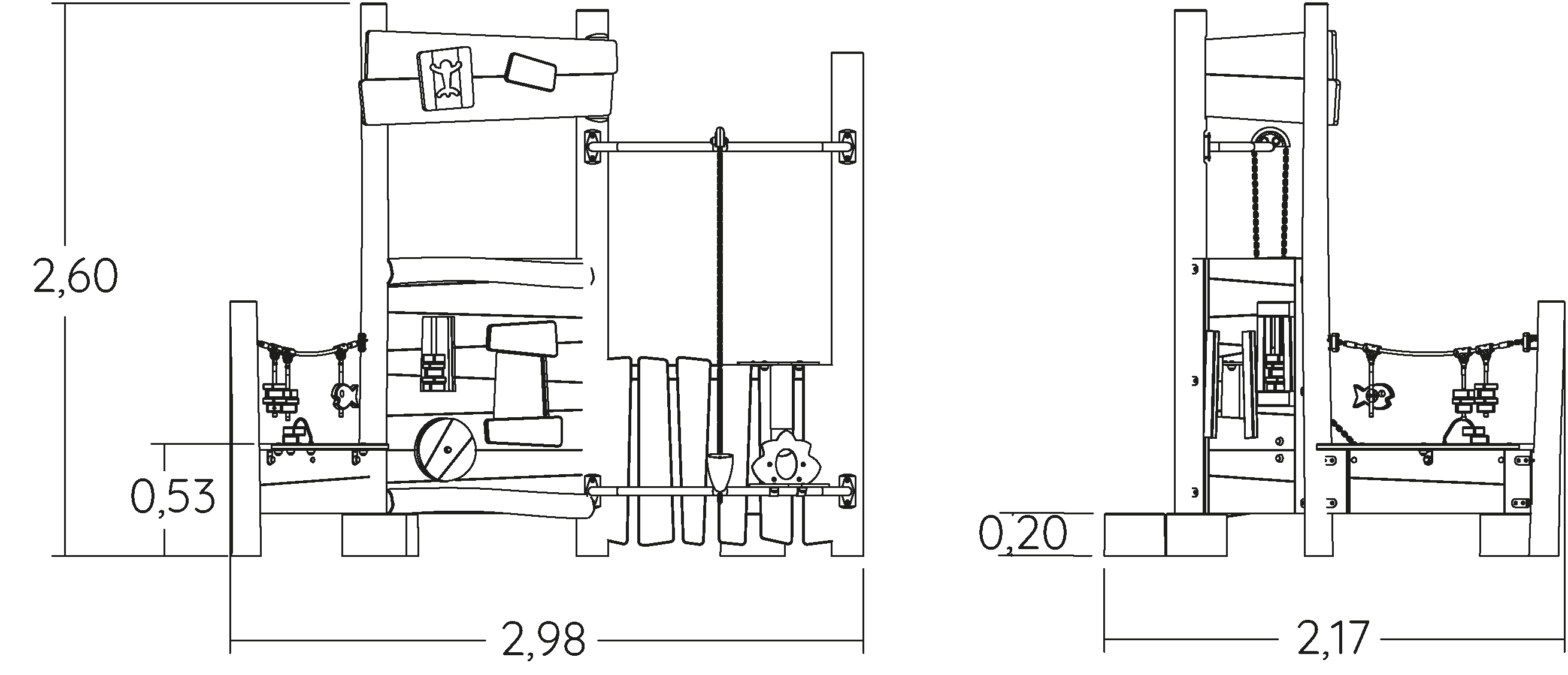 A modul méretei a következők: 2,98 m hosszú, 2,17 m széles, 2,60 m magas. A szabadesési magasság (HCL) 0,60 m.