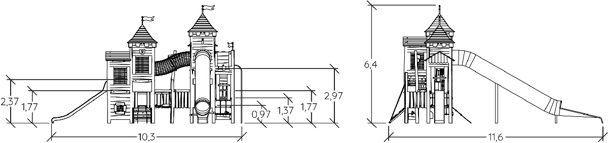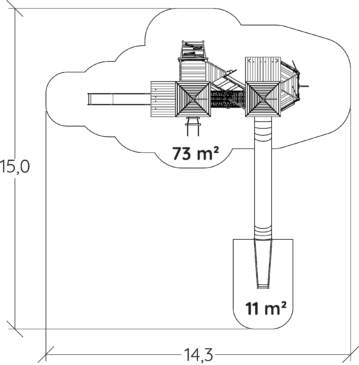 A modul méretei a következők: 11,60 m hosszú, 10,30 m széles, 6,40 m magas. A szabadesési magasság (HCL) 2,10 m.