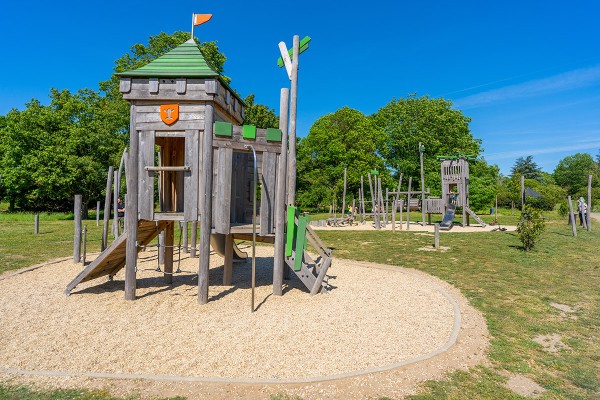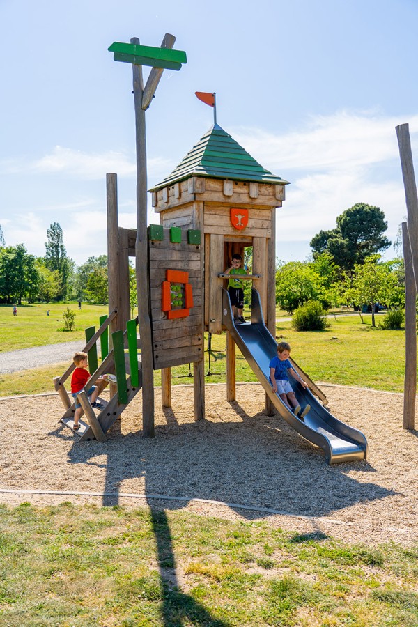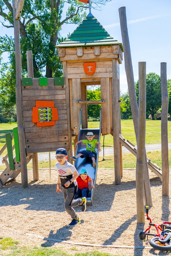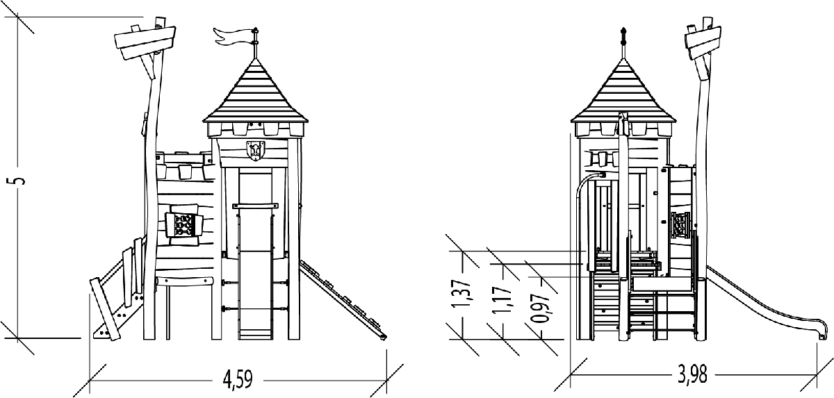 Dungeon - Fa többjátékos eszköz toronnyal, mászófallal és csúszdával - J49203®