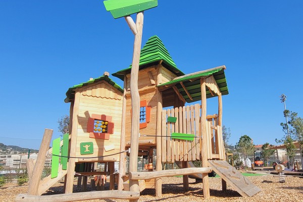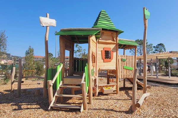 Középkori falu - Fa többjátékos eszközök egyensúlyozó pályával - J49204®