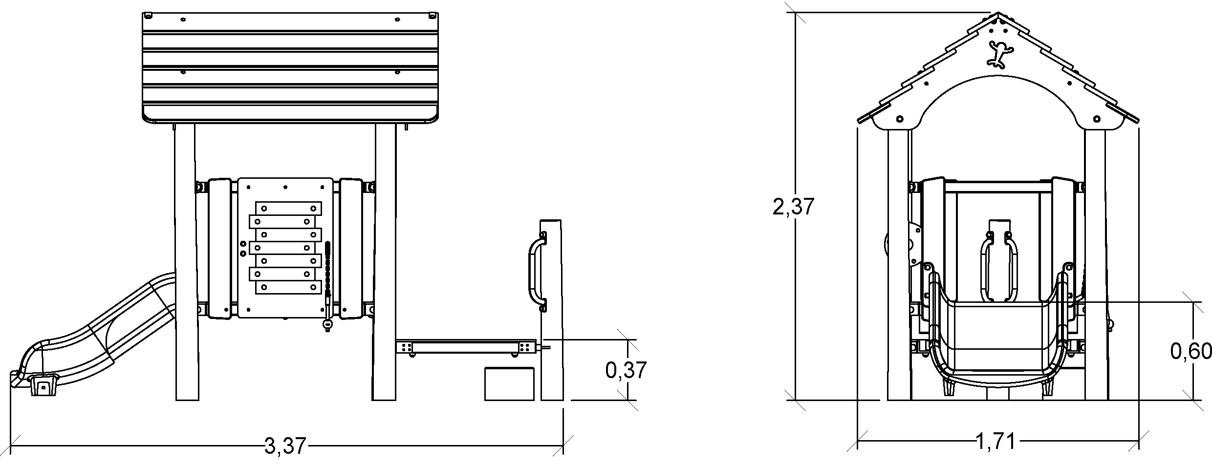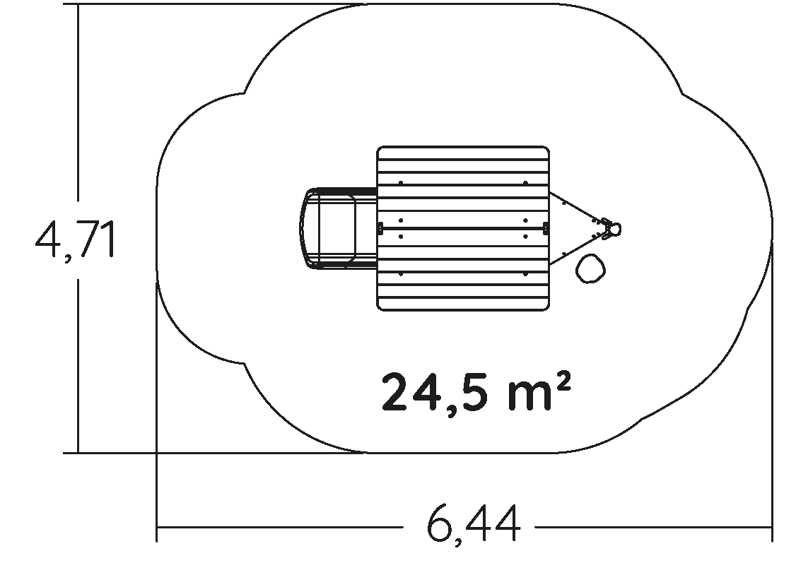 A modul méretei a következők: 3,39 m hosszú, 1,71 m széles, 2,40 m magas. A szabadesési magasság (HCL) 1,00 m.