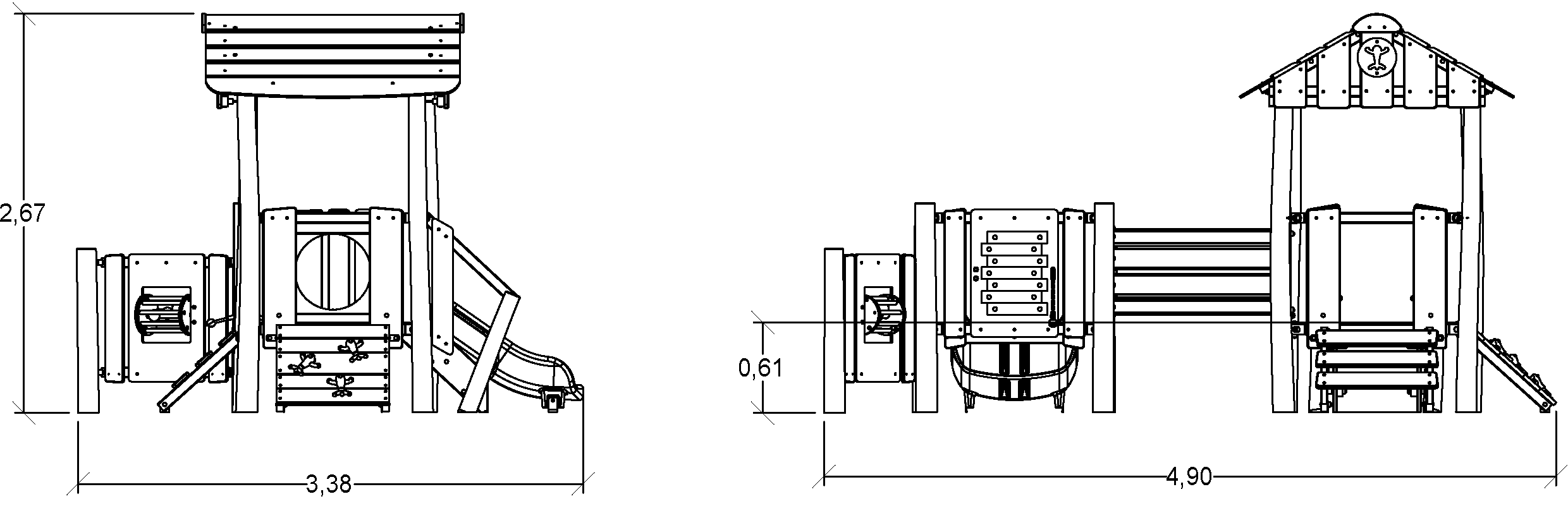 A modul méretei a következők: 4,89 m hosszú, 3,39 m széles, 2,67 m magas. A szabadesési magasság (HCL) 1,00 m.