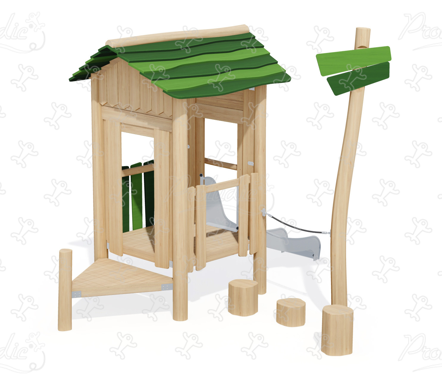 Kunyhó - Kisgyermekeknek való fa játszóház csúszdával - J49412®