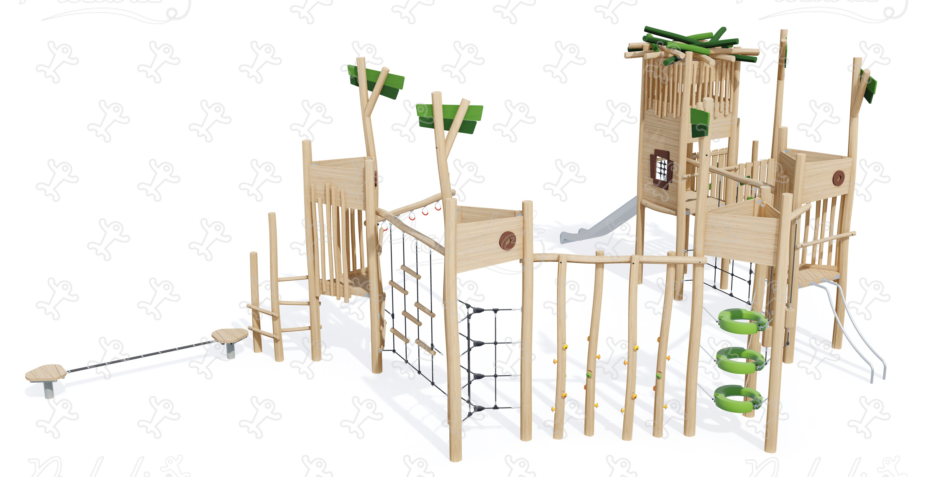Faházösvény - Óriási játszótéri eszköz egyensúlyozó ösvénnyel, hálóelemekkel, toronnyal és csúszdával - J49415®