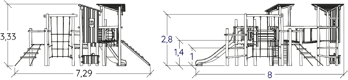 A modul méretei a következők: 7,29 m hosszú, 8,00 m széles, 3,33 m magas. A szabadesési magasság (HCL) 1,70 m.