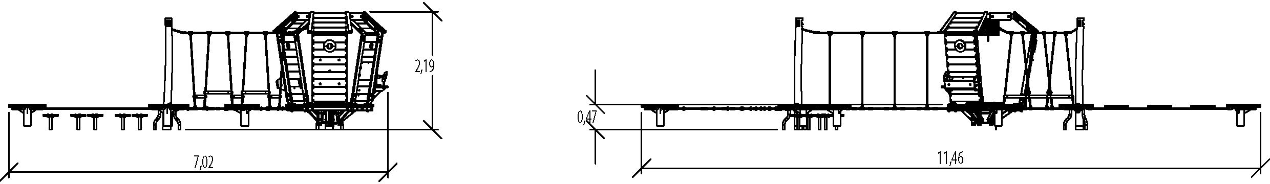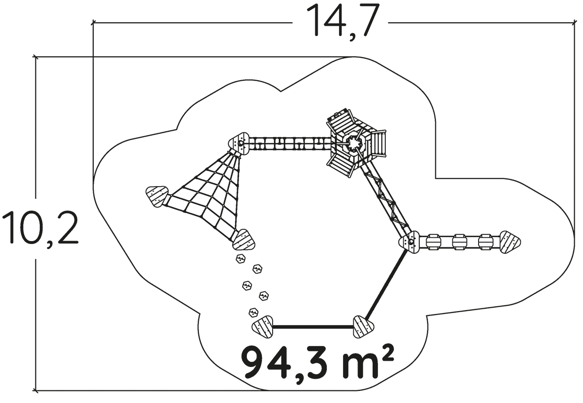 A modul méretei a következők: 9,20 m hosszú, 7,02 m széles, 2,17 m magas. A szabadesési magasság (HCL) 0,60 m.